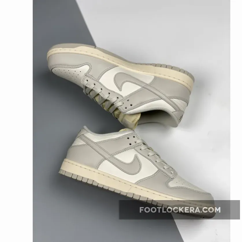 Dressed in a Sail, Light Bone, Cashmere, and Pale Ivory color scheme. This Nike Dunk Low features a Sail leather upper with Light Bone overlays, branding and matching rubber outsole. Yellowed tongues and midsoles gives off the retro, aged look to complete the design.