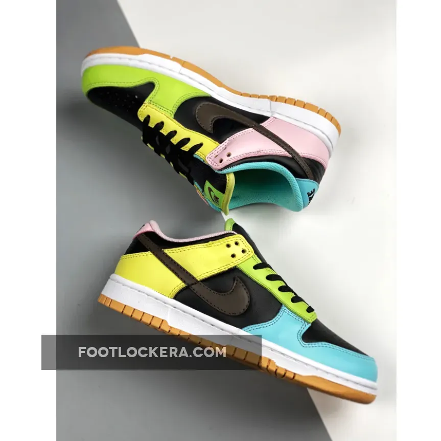 The Nike Dunk Low Free 99 Asymmetric Black Multi is the Swoosh team’s latest addition to their Dunk release line-up this year. The pair will be arriving in a low top silhouette flaunting a mismatching colour scheme for a playful touch. Official images of the sneakers are now live, and a closer look at its colorway instantly tells us why the hype levels on this might rocket up.The Nike Dunk shoe was introduced back in 1985 and remained a fan-favourite silhouette of many basketball players and skaters throughout the years. In the past year, the model acted as a blank canvas for high profile collaborations with global superstars such as American rapper Travis Scott and fashion designer Virgil Abloh.This brand new iteration flaunts a super smooth leather and buttery suede construction from heel to toe. Detailed images show a black base complemented with hues of green, yellow, pink, and teal overlays, and the left shoe boasting the same colours but arranged asymmetrically throughout for a mismatched look. To complete, traditional Nike features on the tongue, heel, and across the quarter panels.