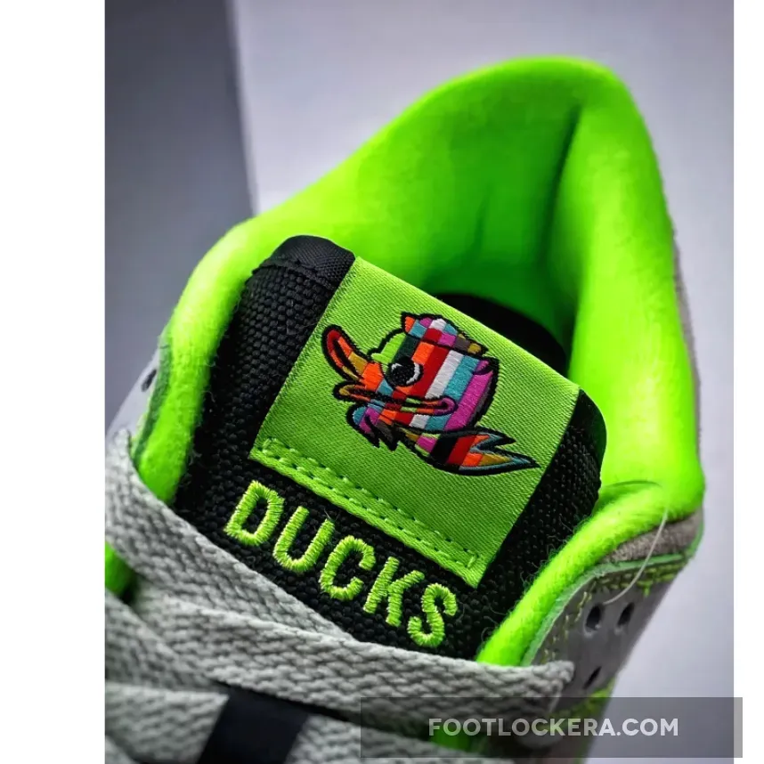 Illuminating the pair comes a vibrant green which runs across the stitching and interior linings, matching the shoe tongue label and ‘DUCKS’ embroidery. Lastly, a Flying Formations NFT graphic logo complements the thematic pair alongside Tinker Hatfield’s signature on the interior of the tongue label.