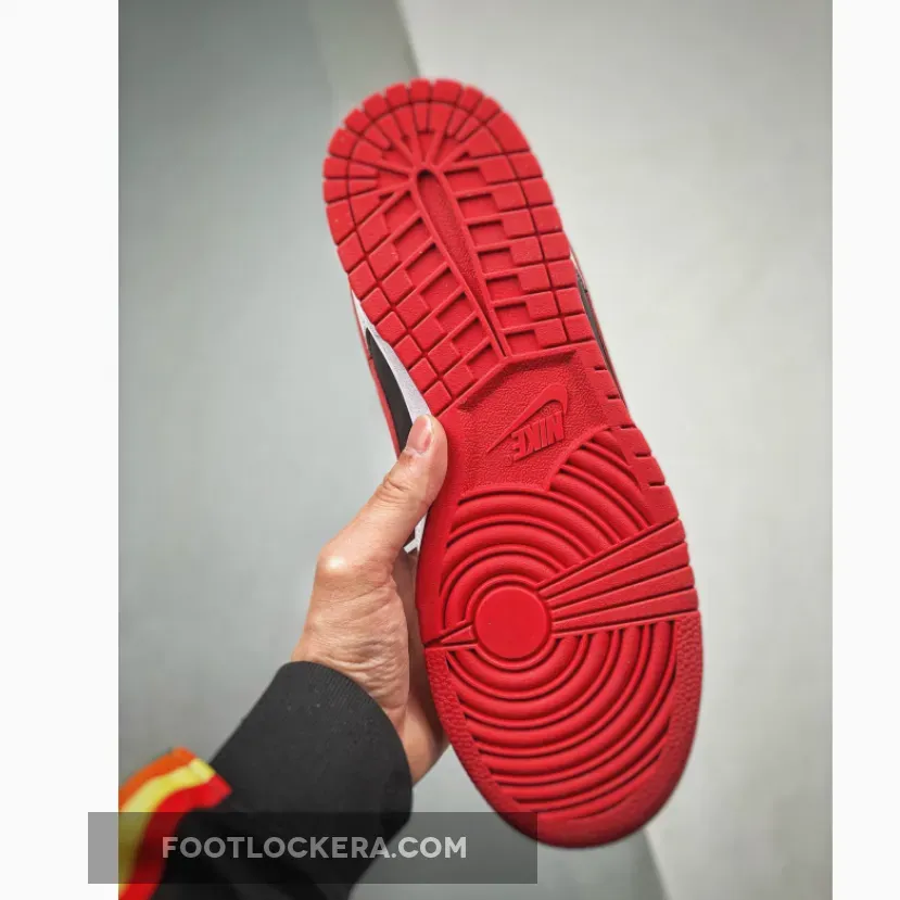 The “Chicago” comes in the form of a bright varsity red, highlighting the lateral Swoosh logos, heel tabs, outersole underfoot and the branding on the insole. These pops of red accentuates the otherwise rather monochromatic black and white model and definitely breathes revitalizes the colorway slightly more.