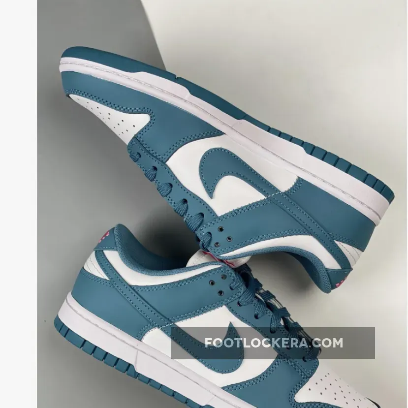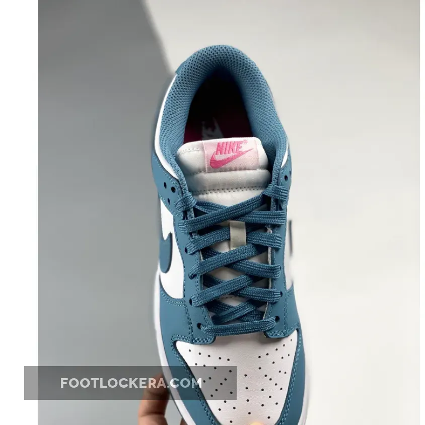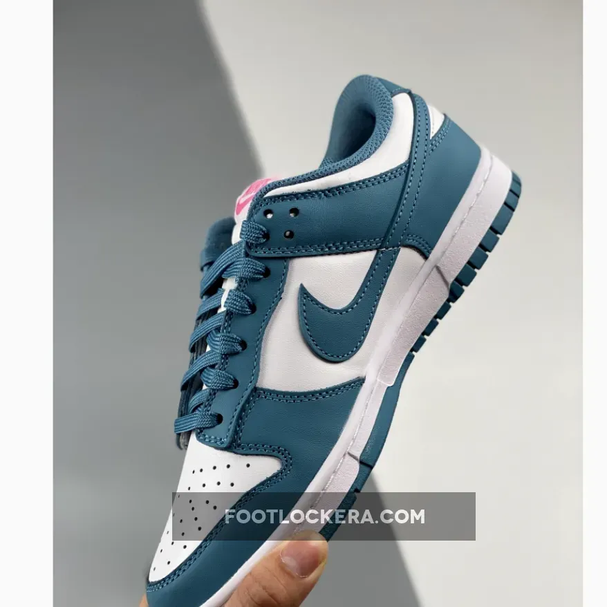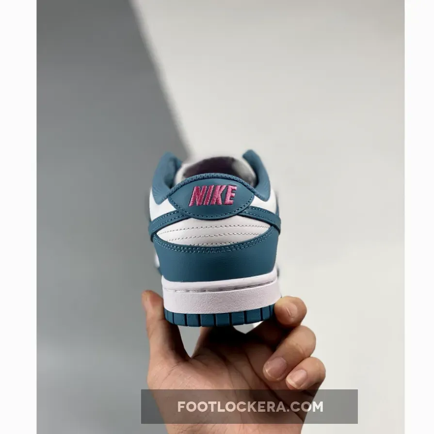 Dressed in a White, Noise Aqua, and Pinksicle color scheme. This offering of the Nike Dunk Low comes constructed in a full leather build with mesh tongues and lining.
