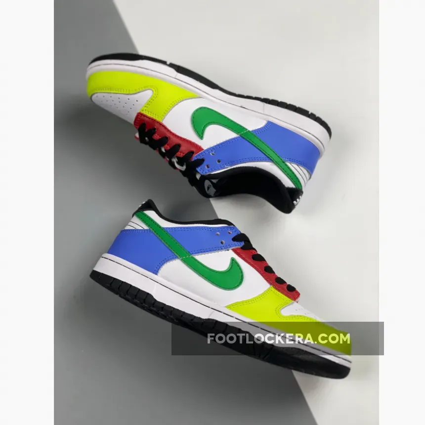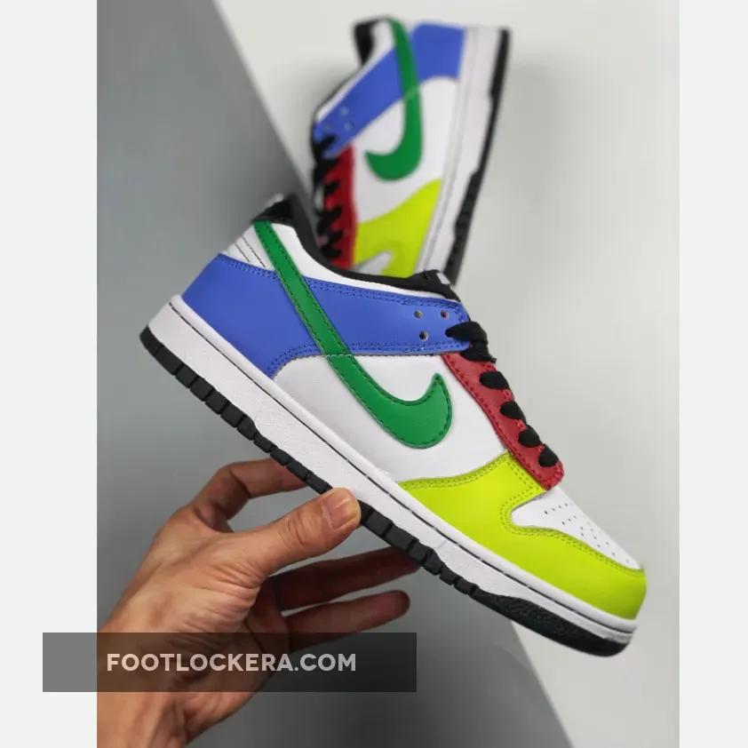 If you’ve been growing your Dunk collection since its resurgence over the past couple of years, then you should cop the most recent Nike Dunk Low Green Strike. Beautifully arranged with various tones, these will no doubt add a splash of colour to your collection so keep reading on for a detailed look at the pair. This variant works atop a crisp white leather base complemented by contrasting accents of red, blue, yellow, green that wrap around panels throughout.