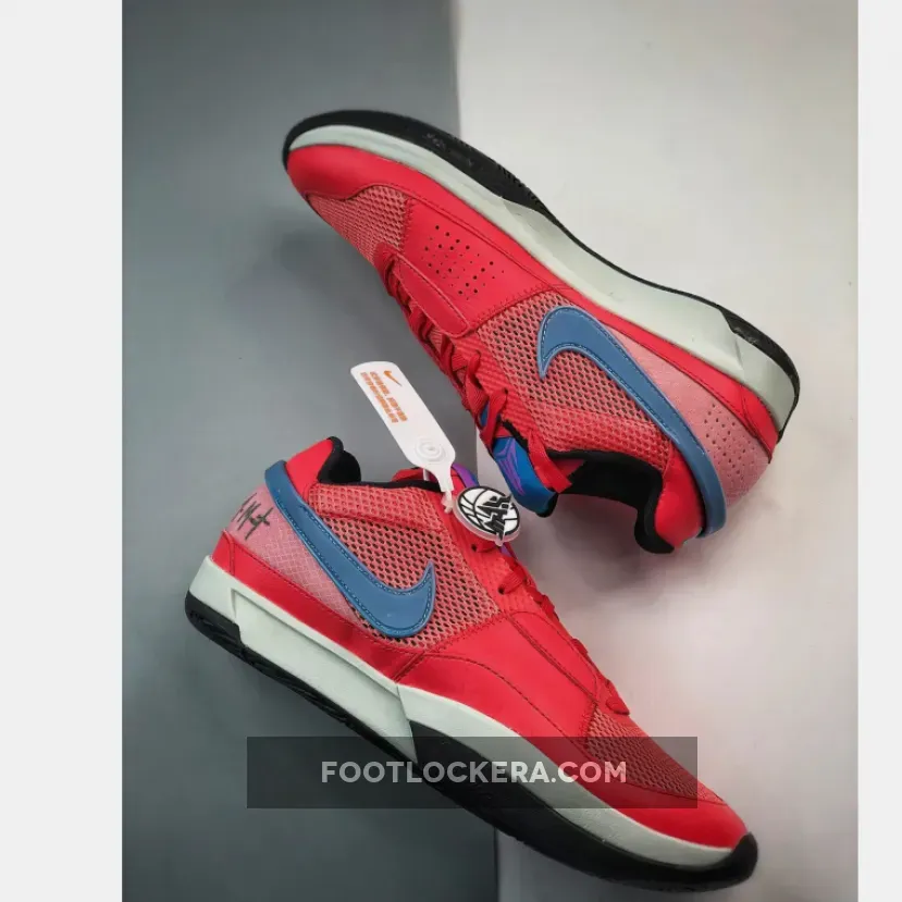 For this Nike Ja 1 “Fuel” iteration, the pair sports a bold “Ember Glow,” “Blue Lightning,” “Light Silver,” and “Black” color scheme.