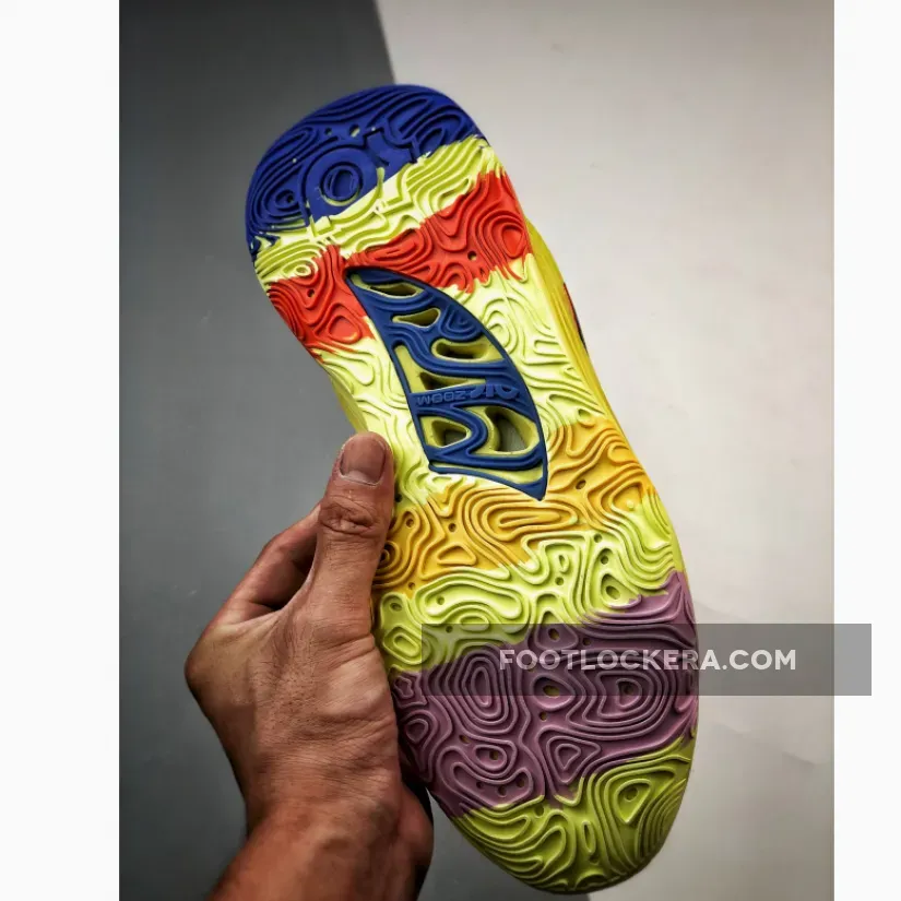 the all-new upcoming Nike KD 15 is now unveiled in an eye-catching “Light Lemon Twist” offering. The Nike KD 15 features a mesh construction on the upper with an external cage for lockdown support, full-length Zoom Air cushioning, and Cushlon foam. Swoosh branding on both side panels, the KD logo on the tongues, and Kevin’s #7 on the heels round out the main details. This colorway below gets covered in Light Lemon Twist all over the upper with a splatter of colors hitting the Swooshes, pink branding on the tongues, and black detailing on the inner liner.