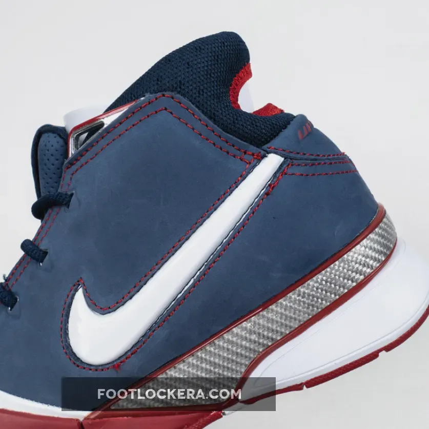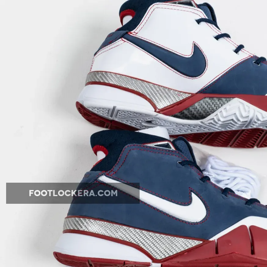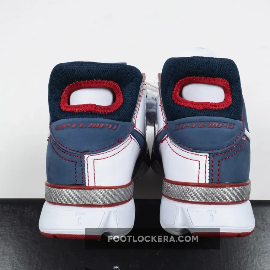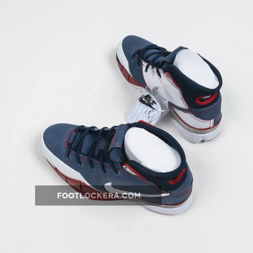 Dressed in a patriotic color scheme. This Nike Kobe 1 Protro features a Navy Blue suede and White leather upper paired with Red accents and Silver detailing. As a nod to Team USA, the shoe comes completed with branded insoles.