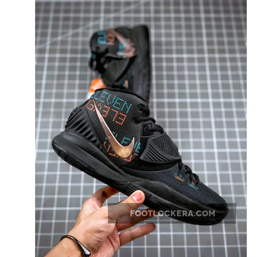 “I’m stoked with my new Nike Kyrie 6 “Eleven/ Eleven”! The black-based upper is sleek and the iridescent Swoosh adds a cool touch. Love the tinted translucent midfoot strap and heel piece – it gives the shoe a futuristic vibe. Comfortable and supportive on-court, plus the black rubber sole provides great traction. Solid choice!”