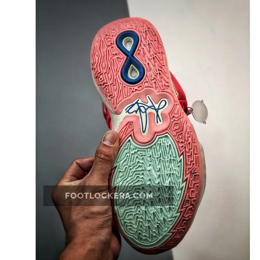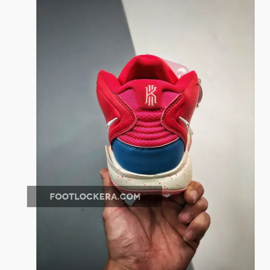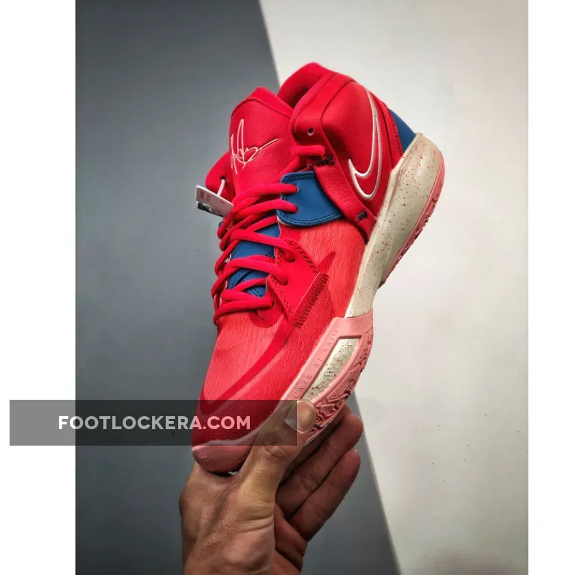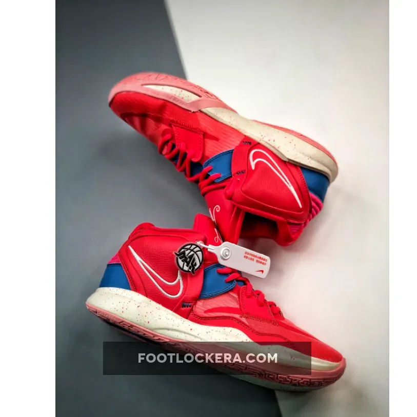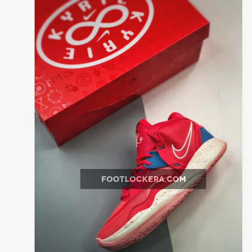 This Nike Kyrie Infinity highlights Red throughout the majority of the shoe in mesh and leather for a simple look. Bright pops of white and baby blue are then spotted on the Kyrie logos on the tongues and heels. Kyrie made sure that these designs specifically were dedicated to his life, family members, and loved ones.