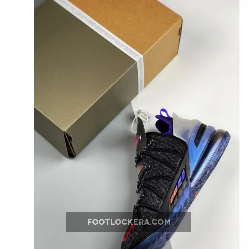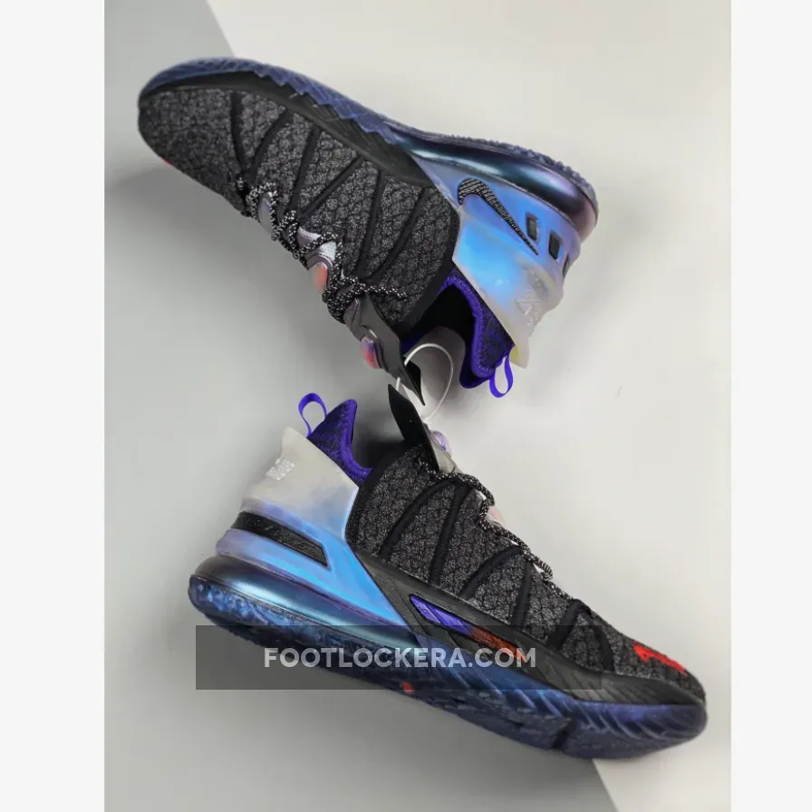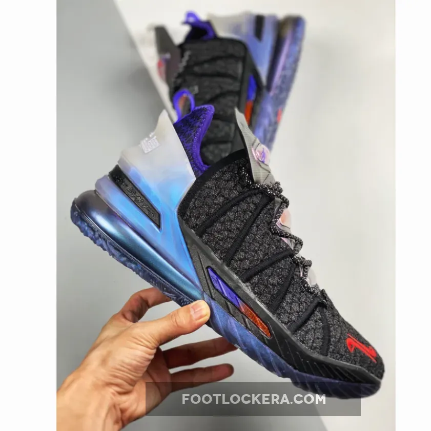 The Nike Lebron 18 Black Blue Orange is the latest rendition of legendary basketball player Lebron James’ eighteenth signature basketball sneaker. The Lebron 18 silhouette was first seen in one of James’ basketball practice sessions early last year and made its grand debut to the sneaker industry in September 2020. Official images of the forthcoming version show a striking colour arrangement that will guarantee both Lebron fans and sneakerheads eagerly waiting to cart their size on drop day.Seen here in hues of black and blue, everything about the sneaker instantly stands out. However, after taking a minute to take a closer look, the forefoot overlay envelops a knit textiles throughout in a smoke grey and stealthy black colorway for a super comfortable feel and stylish look at the same time. Further Nike branding details appear on the lateral toes as embroidered dual red Swooshes and Lebron 18 markings on the tongue to complete.
