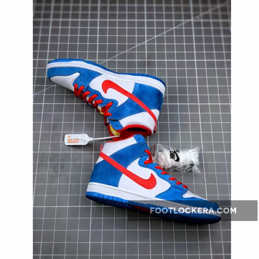 The Nike SB Dunk High Doraemon has got to be one of the most unique Dunk Highs to drop this season. Not only does it have a one of a kind construction that’s pretty rare among this silhouette, it’s also inspired by one of the most iconic Japanese manga and anime series in the history of mankind. Intrigued? Then here is everything that you need to know.Landing in the beloved character’s signature colour scheme, the Doraemon works on a clean white tumbled leather base while bold blue hues arrive on the suede overlays across the upper.Of course, you just can’t talk about this skateboarding silhouette without mentioning the pocket that’s hidden behind the canvas tongue. If you’ve ever watched or read the franchise, you’d know that the Tentomushi Comics character has a pocket on his front that can hide literally anything and satisfy all wishes. While this shoe obviously won’t be able to do the latter, you can store your secret stash in here no problem.