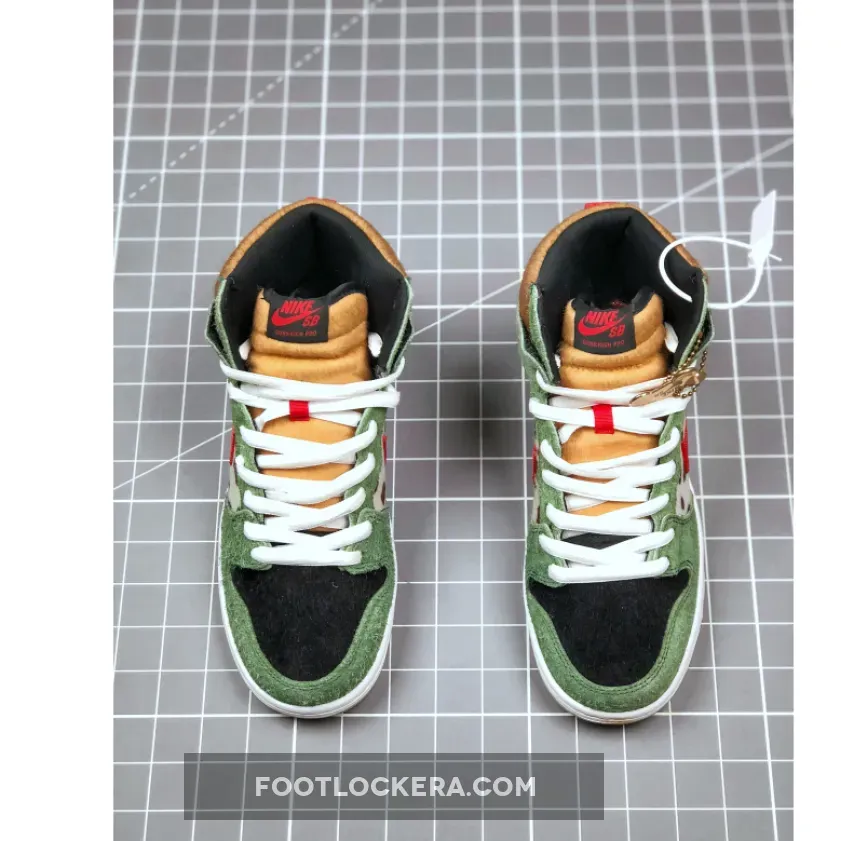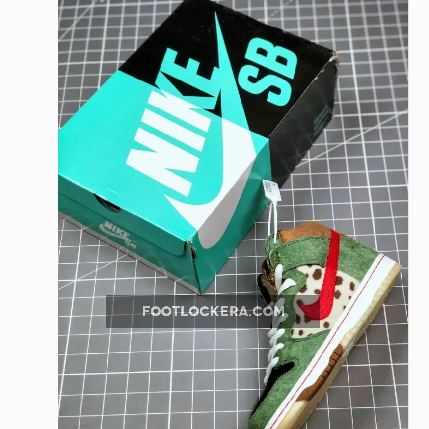The Nike Dunk High SB deviates from its predecessors with the April 2019 ‘Dog Walker’ release. Decades after the original Nike Dunk basketball silhouette hit the shoe market, this skateboarding version combined a supportive high top construction with K-9 inspired flair. The theme of the shoe is shown through details including a dog bone hang tag, dalmatian spots and a red Nike Swoosh ‘collar.’