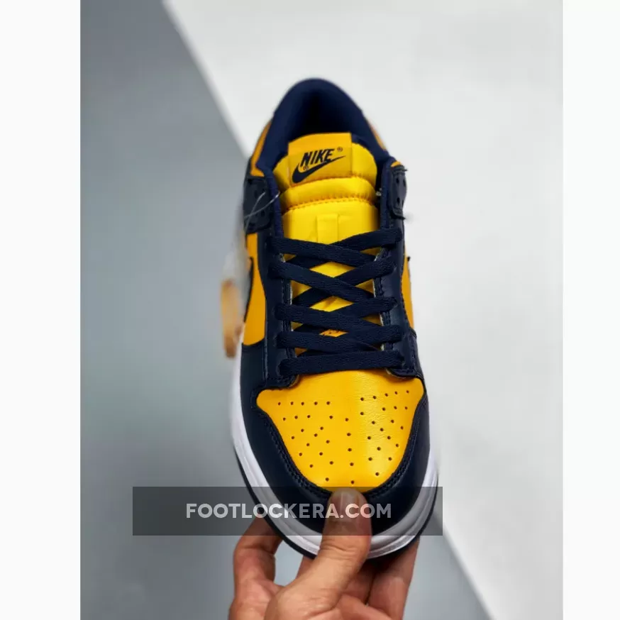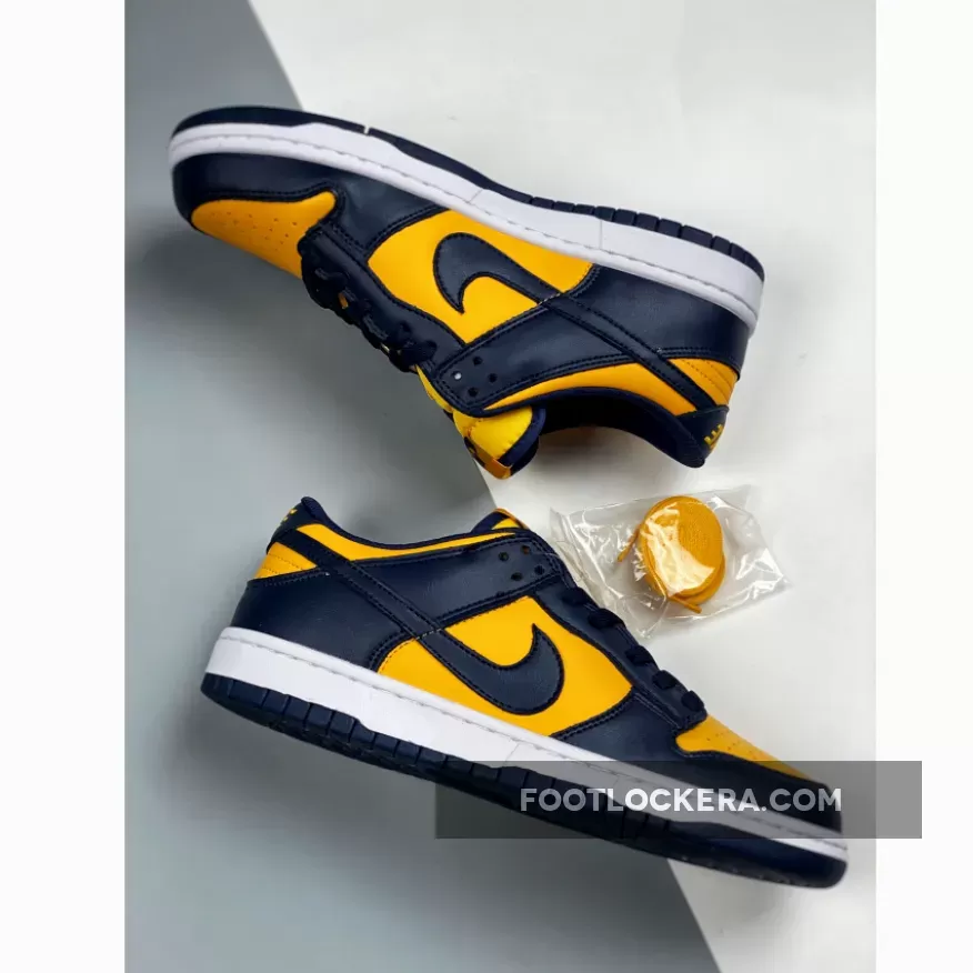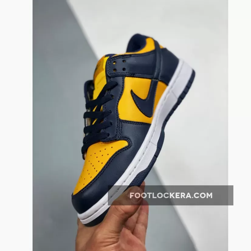 The Nike Dunk Michigan is one of several classic Dunk colourways that many sneakerheads love. Since 2019, the Dunk has seen a huge resurgence due to several high-profile collaborations with the likes of Virgil Abloh and Travis Scott, and as long-term sneakerheads, we love to see it.The uppers are crafted from premium quality leathers throughout, showcasing the iconic panelled design and eye-catching yellow and navy colour blocking. Nike Swoosh branding adorns both the lateral and medial sides, while additional branding remains at the tongue and heel alongside other classic details such as the perforated toe box. If like us, you’re a big fan of Dunks, then these are going straight onto the cop list.If you are looking to get your hands on the Nike Dunk Low Retro Varsity Maize Navy, you need to make sure you know how they fit, so use our Dunk size guide for the best advice from Our Store Supplier’s in-house footwear experts.