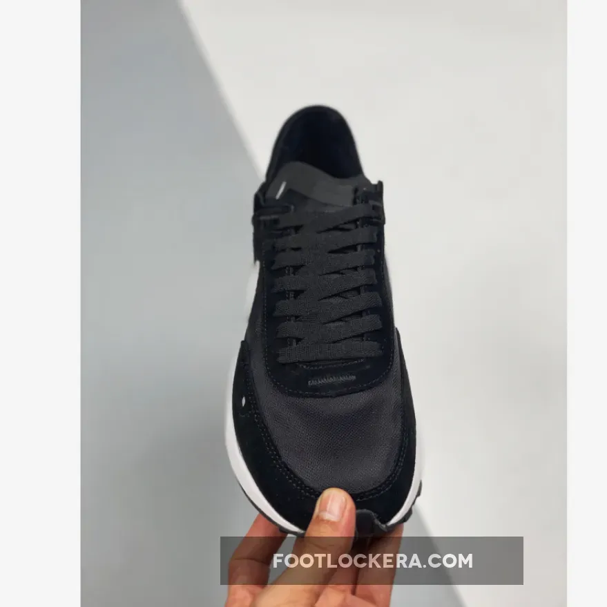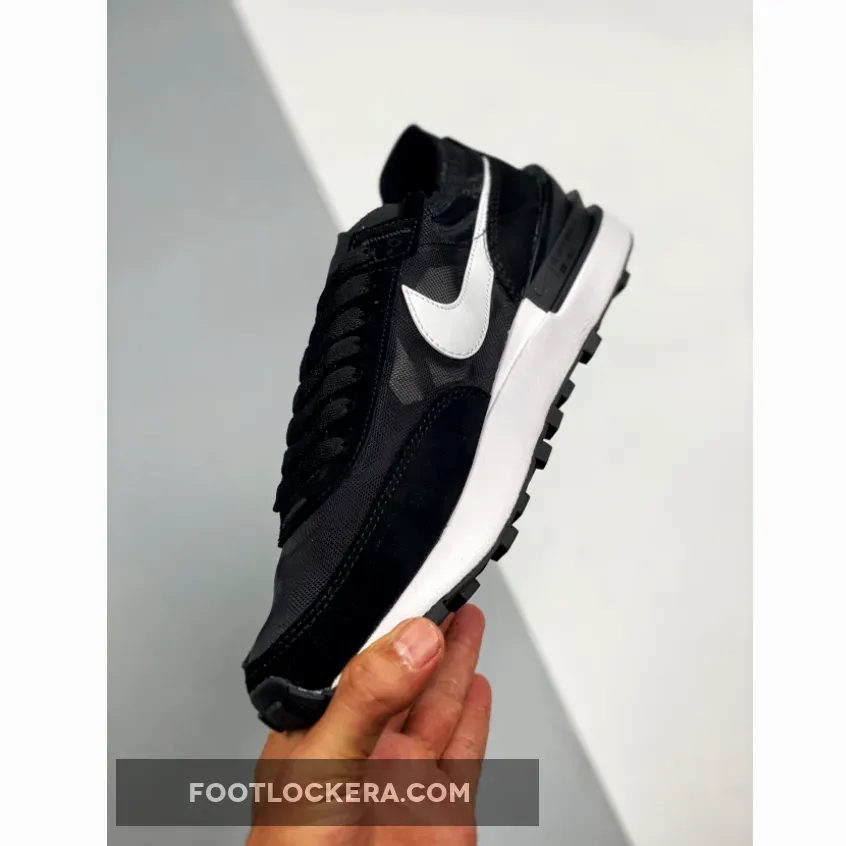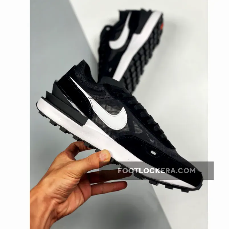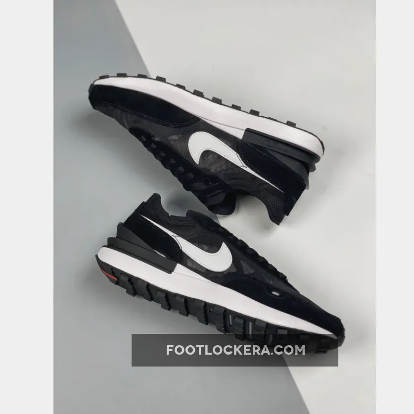 The 48-year-old Nike Waffle looks as sleek and classic as ever with its latest variant. Take a closer look at the Nike Waffle One Black White. This Nike Waffle has a fine black mesh base coupled with matching suede overlays and laces. Crisp white leather signature profile Swooshes sweep across both the medial and lateral quarters of the shoe.