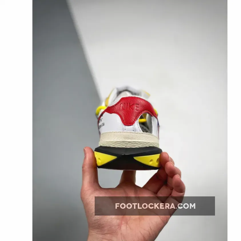 The Off-White x Nike Blazer Low ‘White University Red’ delivers Virgil Abloh’s radical take on the classic silhouette. Supplemental yellow cord lacing snakes across the white leather upper, featuring a series of circular cut-outs and crimson Swoosh branding. Woven tags display ‘Nike Off’ branding atop exposed foam tongues, while Off-White’s signature screen-printed text is plastered across the sneaker’s medial side. Supporting the low-top is a textured rubber midsole, rendered in a vintage pre-yellowed finish that’s disrupted by a molded yellow piece that extends past the heel.