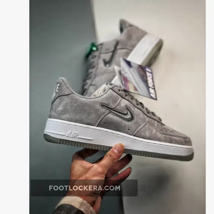 Fortieth anniversary festivities are far from winding down for the Nike Air Force 1. Case in point is the new Nike Air Force 1 Low Jewel Grey with luxurious little touches to mark a momentous year. Get ready for the Nike Air Force 1 Low Jewel Grey. This AF1 is covered in premium Smoke Grey suede from heel to toe and from base to overlays. The highlights of the shoe are the jewelled profile Swooshes on both sides of the shoe in matching tones. An embroidered mini Swoosh in grey embellishes the edge of the eye stay panel. White-on-grey branding can be found on the tongue tab and the insole. Embroidered white Nike Air text branding, on the other hand, adorns the heel tab. An all white midsole and an icy light grey semi-translucent rubber outsole finish off the design of this sneaker. Cop the Nike Air Force 1 Low Jewel Grey on Our Store Supplier app and always be in the know when it comes to the latest Nike release dates.