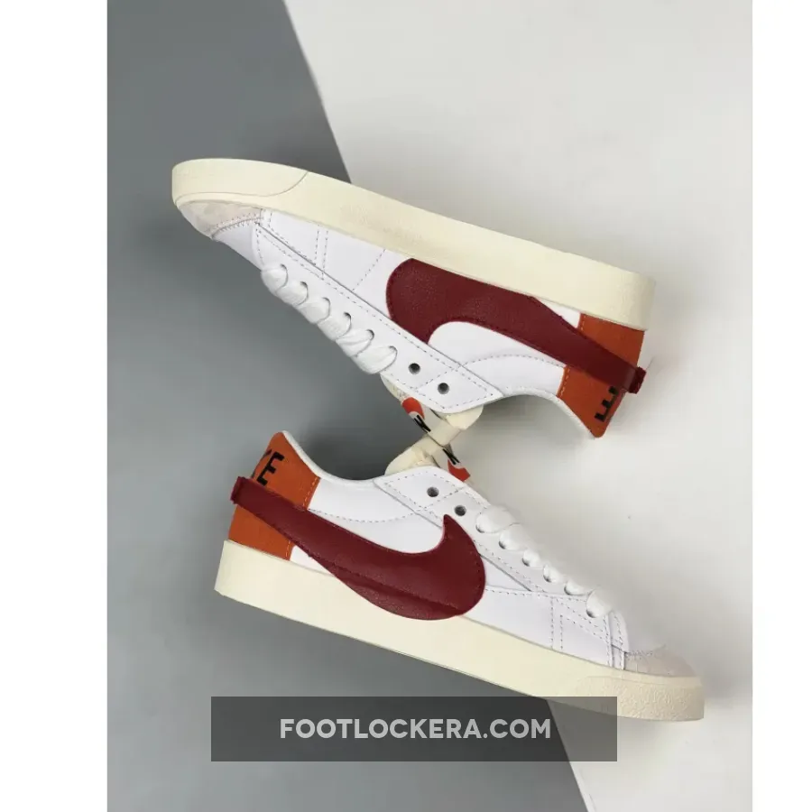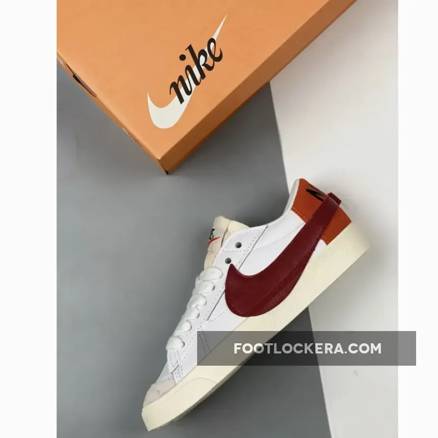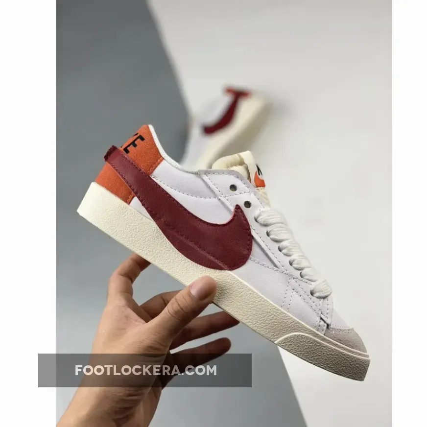 A stylish wardrobe staple with a fun oversized twist, the Nike Blazer, continues to roll out stunning new colourways. A case in point is the Nike Blazer Low Jumbo White Red. The all-smooth-leather upper is the perfect canvas for the eye-popping big and bold wine-coloured Red Swooshes that embellish both sides of the shoe. The Swoosh on the lateral side spills out onto the midsole, giving the shoe a playful, quirky feel. The suede heel tab with black Nike text branding is in a contrasting bright orange-red hue. A furry light grey toe cap and the exposed foam tongue add more touches of character. A textured white midsole and a beige herringbone rubber outsole cap off the design of the shoe. Cop the Nike Blazer Low Jumbo White Red on Our Store Supplier app and never miss any new introductions from the Nike release calendar.