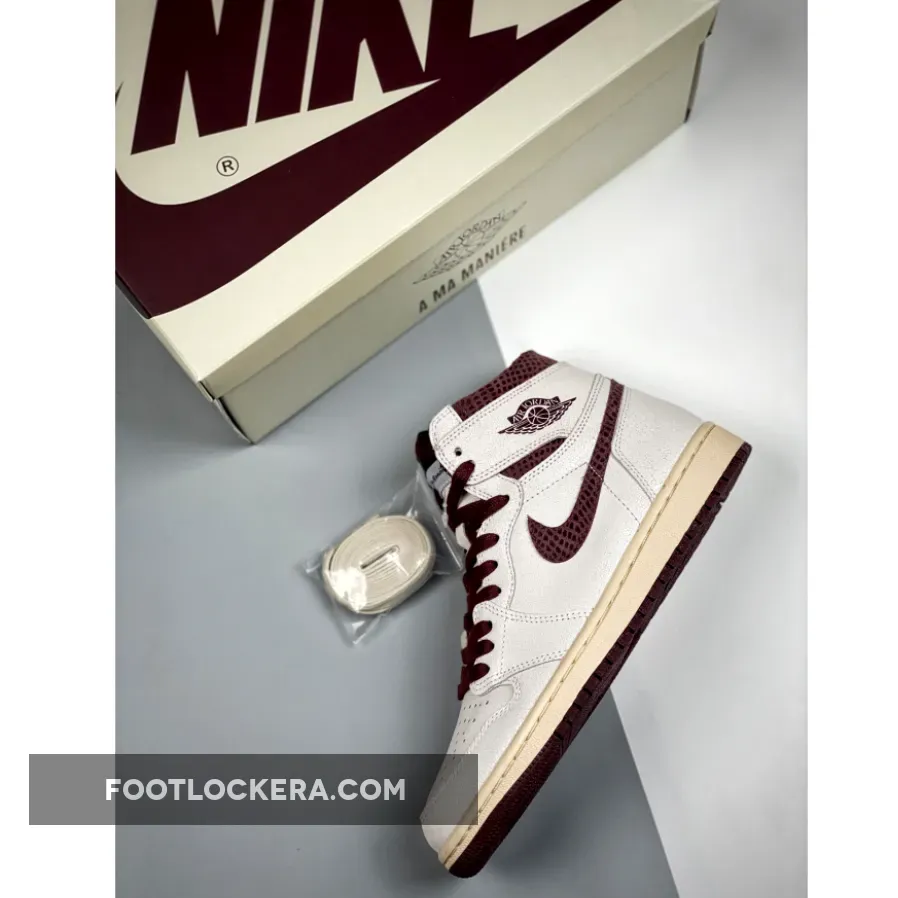 Michael Jordan’s Air Jordan 1 basketball kicks are still as famous today as they were in 1985, except they’re now widely popular on the streets and not only on the court. There are hundreds of AJ1 colourways on the market, but only a few are noteworthy. Case in point: the A Ma Maniére x Air Jordan 1 High. If you’re a die-hard Jordan fan, we have no doubts that these are on your must-cop list.For this collaboration, James Whitner’s Air Jordan 1 High sees another super clean setup, just like the A Ma Maniére x Air Jordan 3 that remains highly coveted today.From heel to toe, the panels indulge in a smooth suede setup in an off-white hue. The overlaying panels, notably the Swoosh logos on the lateral and medial sidewalls and the collars, see a burgundy leather material with a croc/snakeskin-like pattern for luxury vibes. Completing this high-top Air Jordan 1s are AMM branding details as well as an inspiration phrase concealed within the inner part of the ankle flaps that reads “You have to expect things of yourself before you can do them. Also, use our Air Jordan 1 size guide to know how they fit.