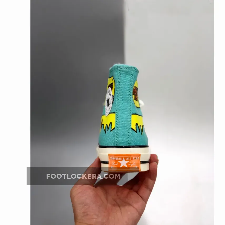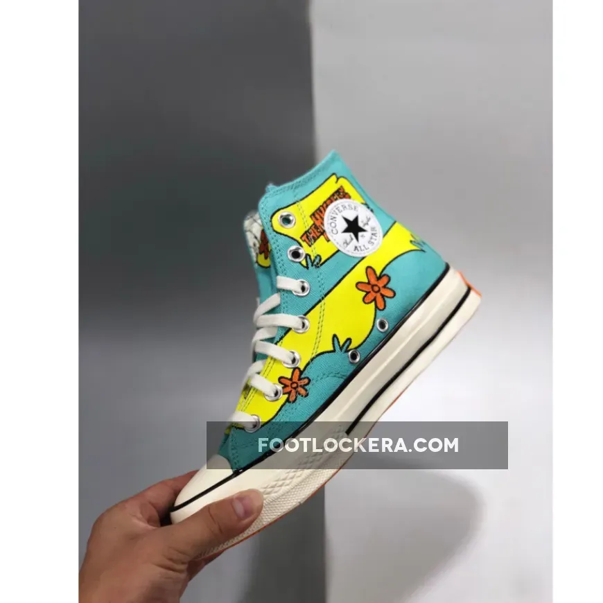 The Scooby-Doo x Converse Chuck 70 High Top Pool Blue is one of several variants of the classic Converse silhouette launching as part of an ongoing collaborative collection with Scooby-Doo. Modelled on the colourway of the legendary mystery machine from the show, these are no-doubt the stand-out pair from the collection. The uppers here are crafted from high-quality durable canvas, and then decked out in the mystery machine’s signature pattern – with blue, green and orange shades. Converse’s signature branding appears in the form of a sewn-on star logo, while mystery machine branding is featured as part of the vibrant print. Black and orange stripes continue the familiar colorway, while a round rubber toe box completes the look neatly. The Scooby-Doo x Converse Chuck 70 High Top Pool Blue is yet to receive an official release date, so be sure to stay locked in right here at Our Store Supplier for all the latest updates as they launch.
