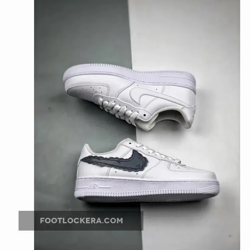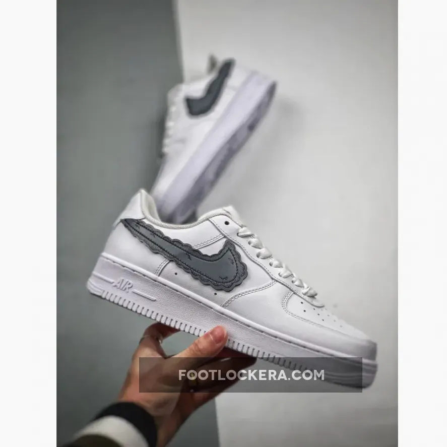 Sky High Farm Workwear’s Nikes are undoubtedly another simple pair of AF1s realized in the shoe’s classic colorways — black and white — and minor tweaks. But the brand’s collaborative Nikes are truly elevated with a cloud-like Swoosh by KAWS and go towards a purpose.