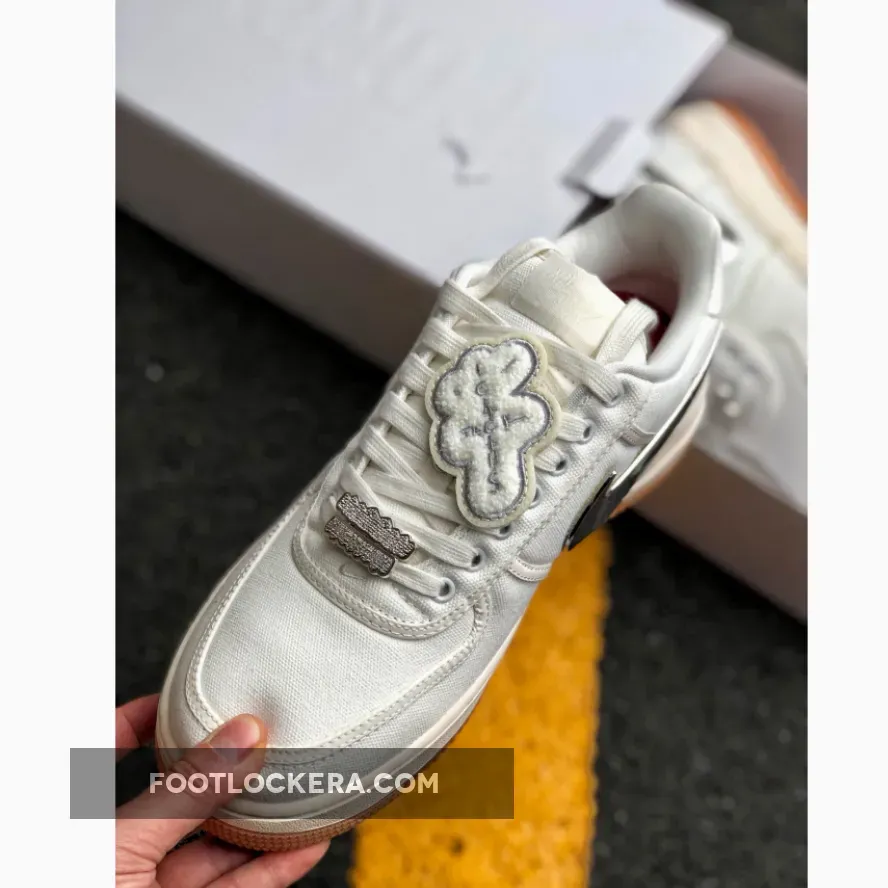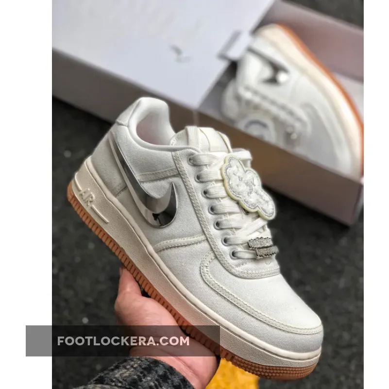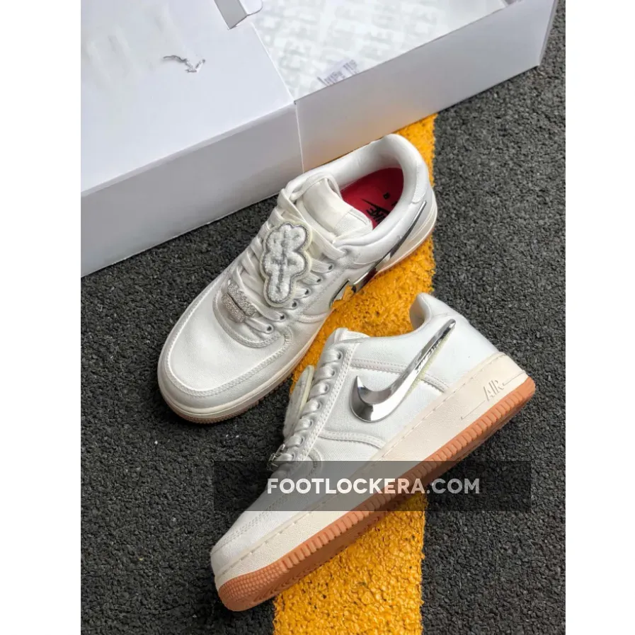 The Travis Scott x Nike Air Force 1 Low Sail is ?! Clean design with subtle details like the upside-down Nike Air & blinged laces. Perfect for daily kicks or collecting. Size up for a relaxed fit ?. #AF1 #TravisScott #Nike #Sneakers ??