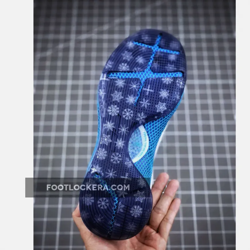 Footwear customizer and entrepreneur Devlin Braswell, also known as Dee-Nyce, is the founder of Oakland-based boutique Fly Boys Couture Club (FBCC) and knows how a safe space and a mentor can lift a community. Both him and Steph teamed up to create the Curry 6 “Christmas in the Town” by letting the youth from his class drive the design. They began by brainstorming about symbols of Christmas, which led to the classic image of snow. While it doesn’t snow in the greater Bay Area, the children brought up Lake Tahoe as the closest location they could travel to with their families to enjoy a White Christmas. Wanting to create a Christmas colorway that could be worn year-round, they then honed in for the inspiration of Lake Tahoe, with the White snowcaps of surrounding mountains floating far above the icy Blue lake. This iconic scenery is reflected in the colorway’s pristine White upper and the Blues of the midsole and outsole. The kids also loved the connection to Carolina Blue, knowing Stephen spent his Christmas holidays in North Carolina when he was their age. The sole of the shoe is adorned with unique snowflakes, representing the personalities of each kid in Dee-Nyce’s class. The insole features the students’ actual drawings of snowflakes, and on the heel of the insole sits a holiday-themed Oakland tree drawn by two of the students. Adorned with lights and basketball ornaments, this Town tree is a fitting tribute to the man who has led the resurgence of Oakland professional basketball. Featuring best-in-class traction and an unmatched balance of stability and cushioning, with a full length speed plate and innovative HOVR cushioning technology, the Curry 6 is made to support one of the most unique athletes on the planet.