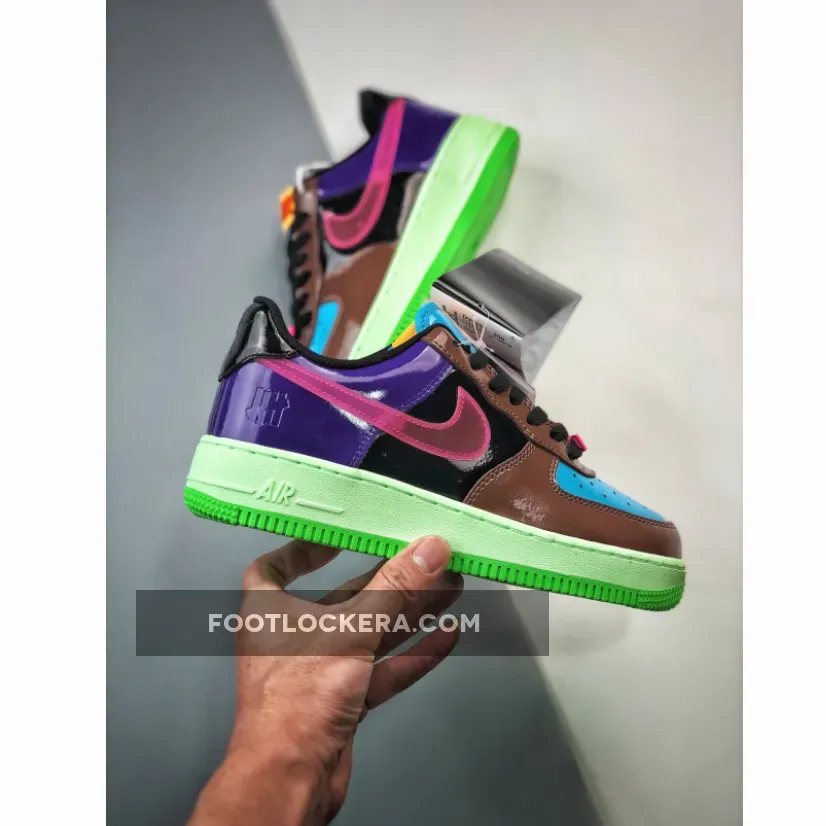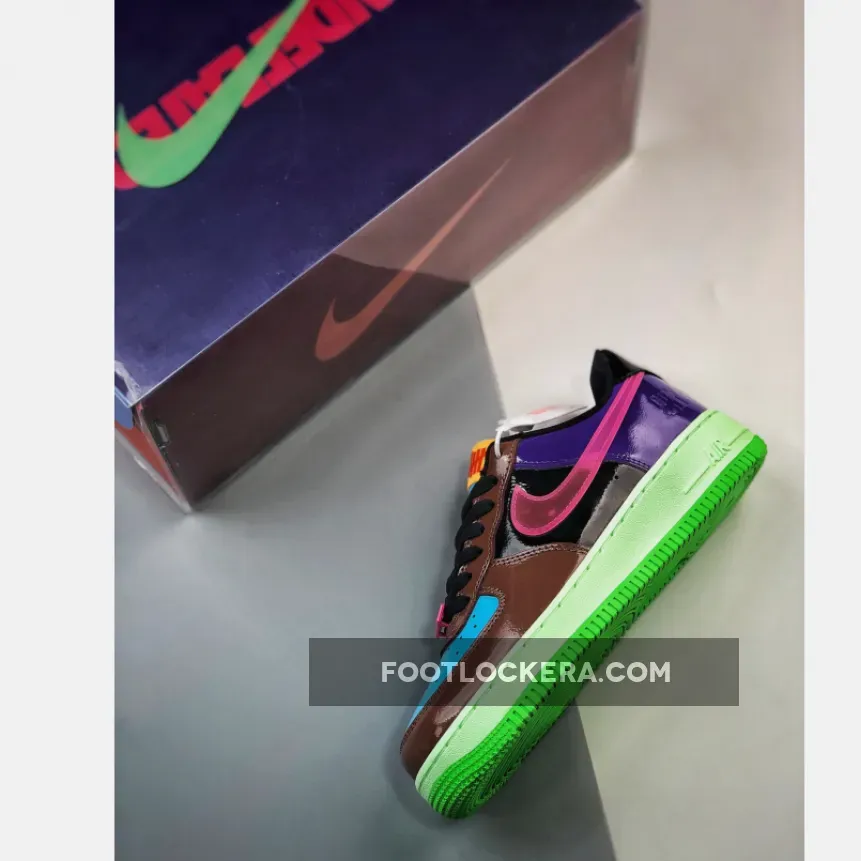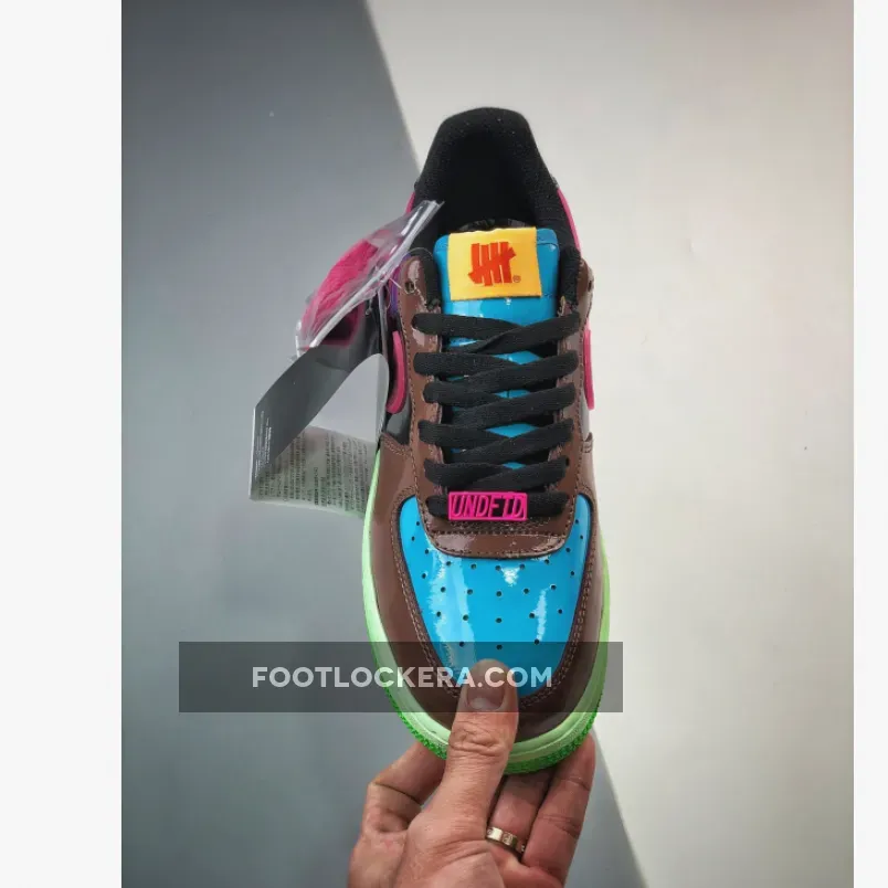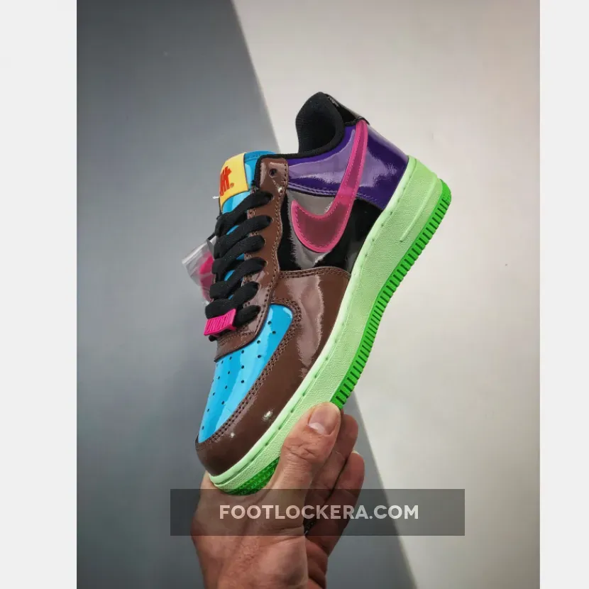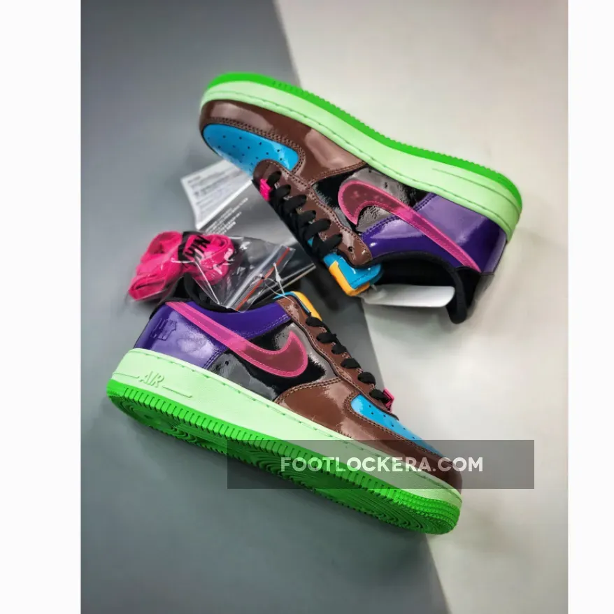 The iconic sneaker boutique and apparel brand founded in L.A., Undefeated, ties up once again with Nike to level up the Bruce Kilgore-designed Nike Air Force 1. Presenting the colourful Undefeated x Nike Air Force 1 Low Pink Prime. This AF1 swaps out its usual smooth leather panels with glossy patent leather from heel to toe except for the Swooshes. The toe box is light blue while the toe box, mudguard and eye stay panel are chocolate brown. The mid-panels are pitch black and the heel panels are eye-catching purple. The signature profile Swooshes on both the medial and lateral mid-panels are a sem-translucent TPU in vibrant pink. On the other hand, Nike Air branding is embossed on the black heel tabs.