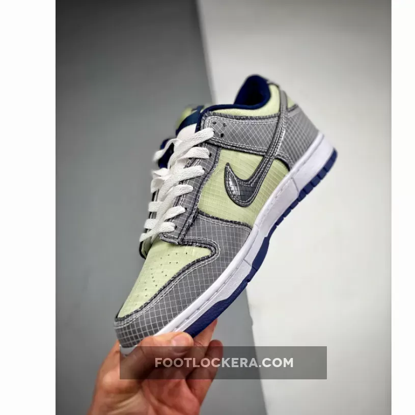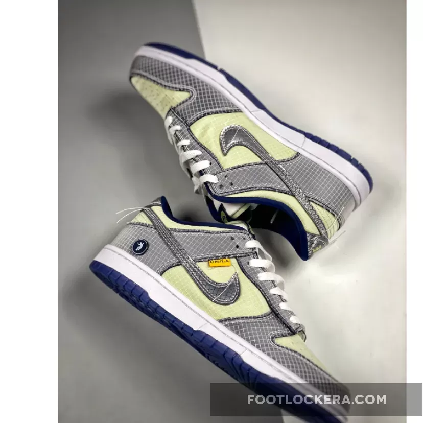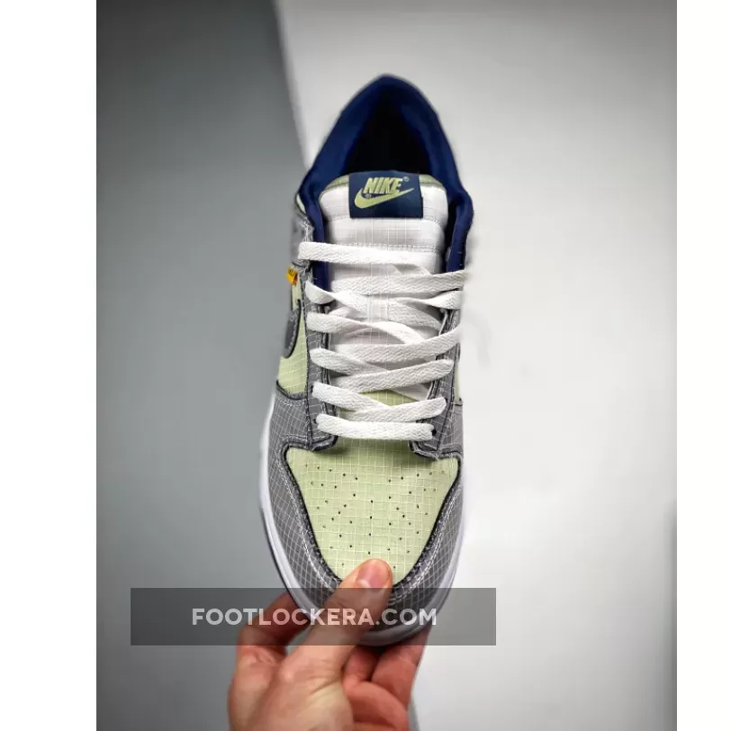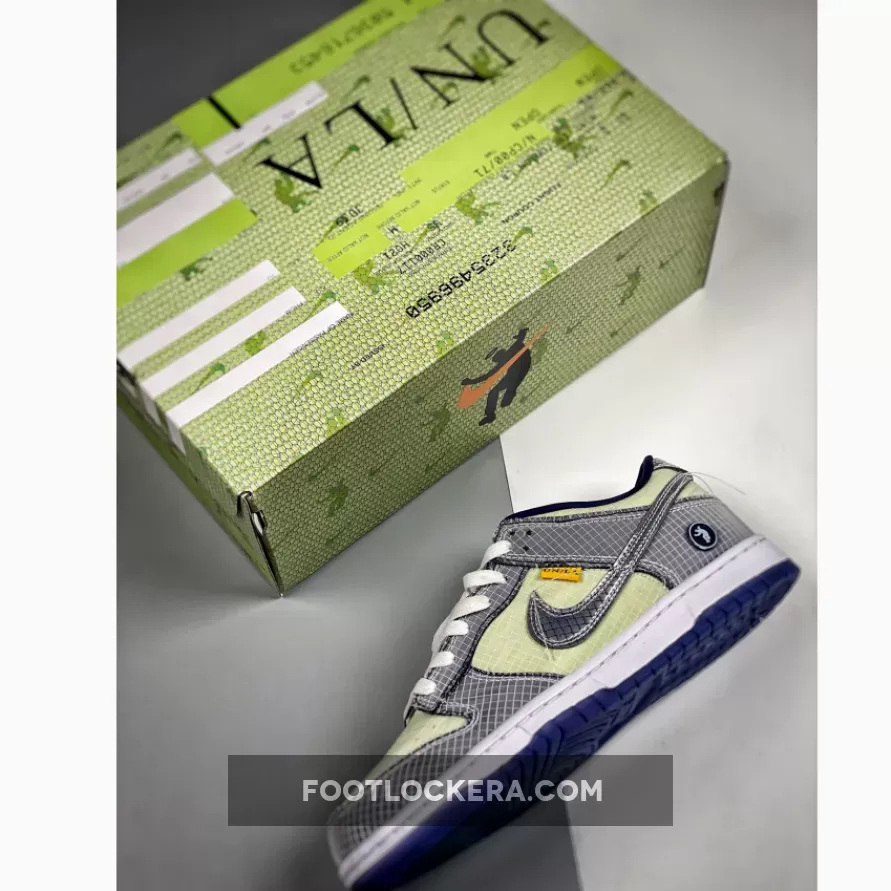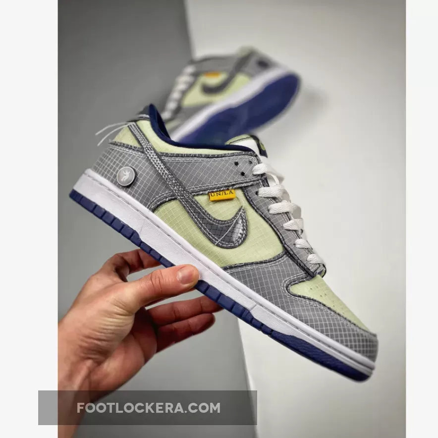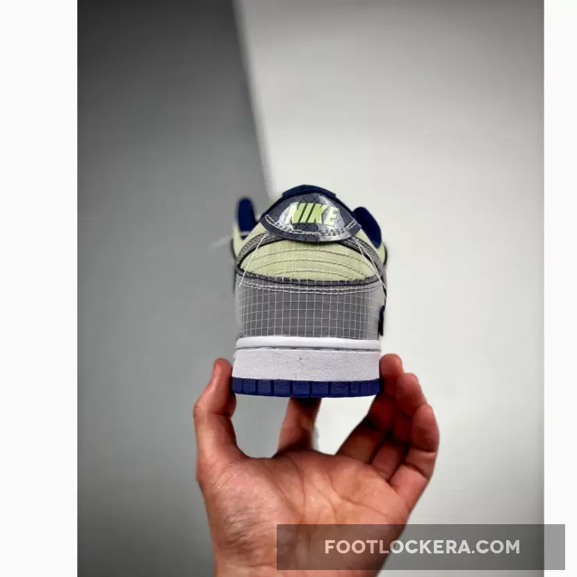 Los Angeles-based streetwear retail company, Union LA, and Nike have collaborated to bring you the Union LA x Nike Dunk Low Midnight Navy.The titular Midnight Navy are actually accents on the shoe, found on the inner lining and the Union LA Frontman logo button on the lateral heel counter. The base of the upper is in a cool Lime Ice translucent ripstop nylon material with a white gridded pattern. The overlays, also in gridded ripstop nylon, on the toe cap, the mudguard, the eye stay panel and the foxing are in neutral slate grey. The tongue, dressed in the same type of material as the rest of the upper, is in white. The signature profile Swooshes on both the medial and lateral sides are in slate grey but the grid on the material is more similar to a chain link design rather than just a grid. The Swooshes and the Nike-branded heel tab all have a reflective finish. A “UN/LA” tag can be seen at the collar. A large co-branded baggage tag is attached to the pair. White midsoles and Midnight Navy outsoles complete the look of the shoe.
