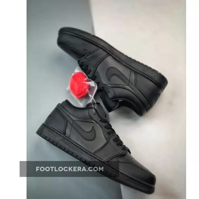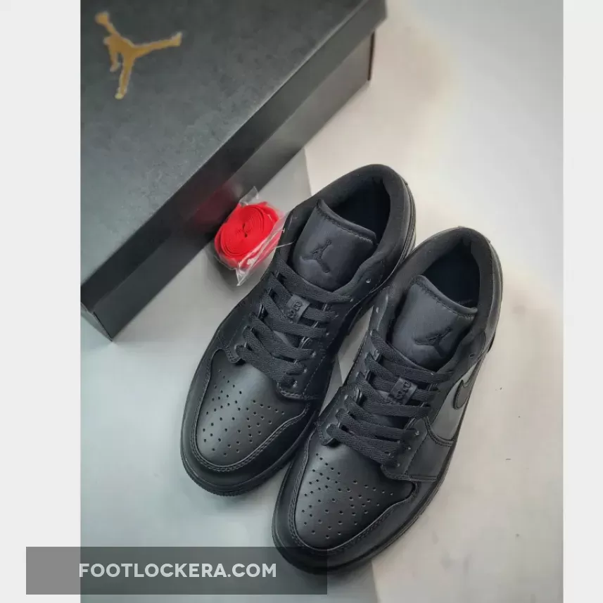 Shown here is the latest “Triple Black” colorway of the low-top Air Jordan 1. Much like the Mid, the shoe features a Black smooth and tumbled leather upper paired with nylon tongues, tonal branding atop a solid Black rubber sole.